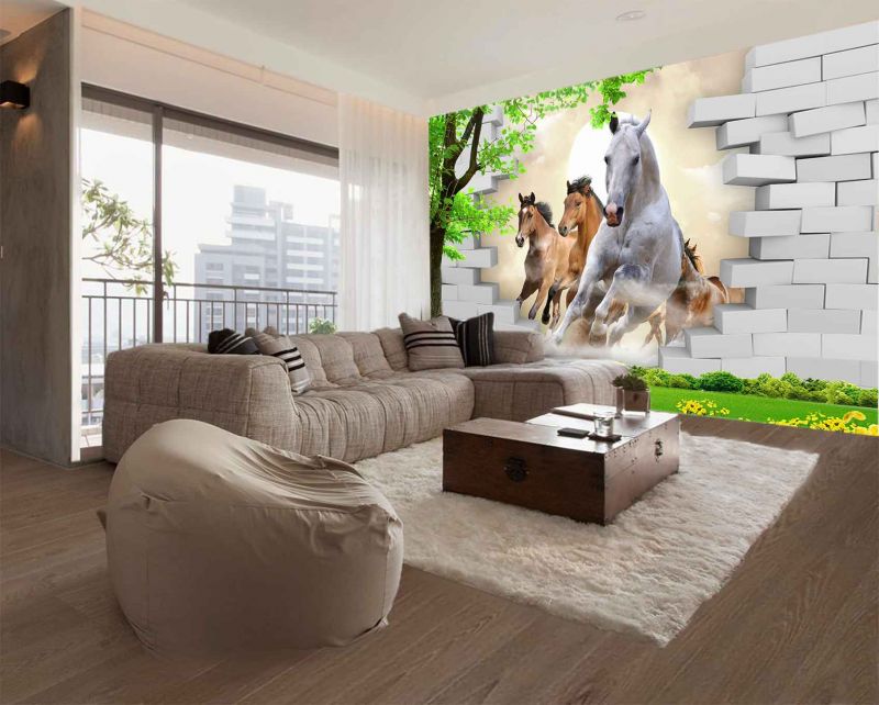 Duvardan Çıkan Atlar 3D Duvar Kağıdı