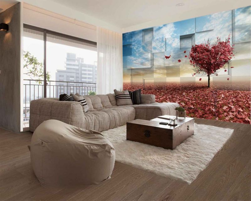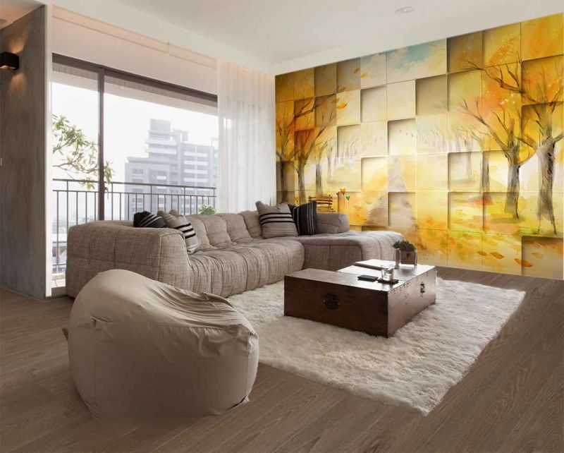 Boyutlu Sonbahar Ağaçları 3D Duvar Kağıdı
