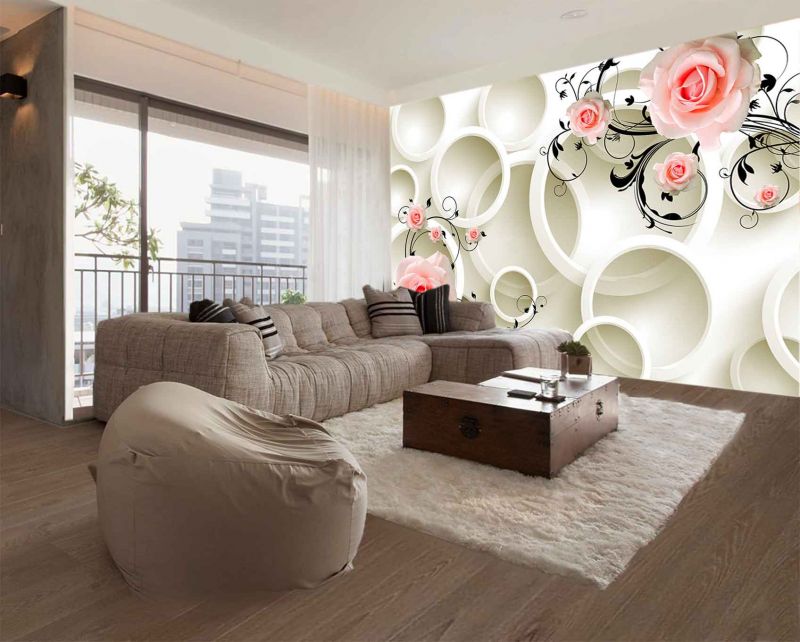 3 Boyutlu Çemberler Güller 3D Duvar Kağıdı