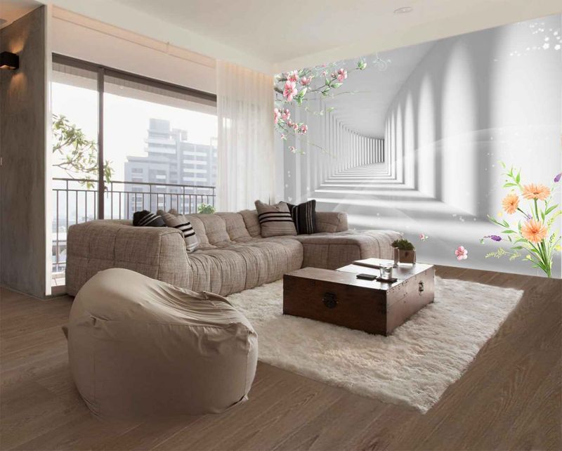 Çiçekli Beyaz Tünel 3D Duvar Kağıdı