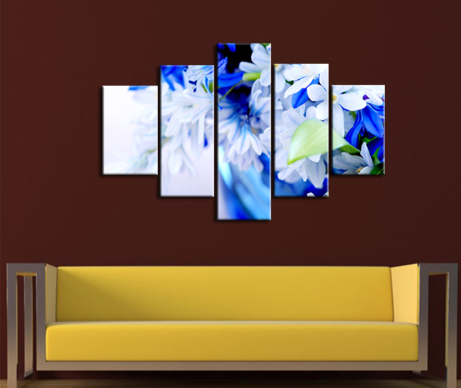 Mavi Beyaz Çiçekler Kanvas Tablo