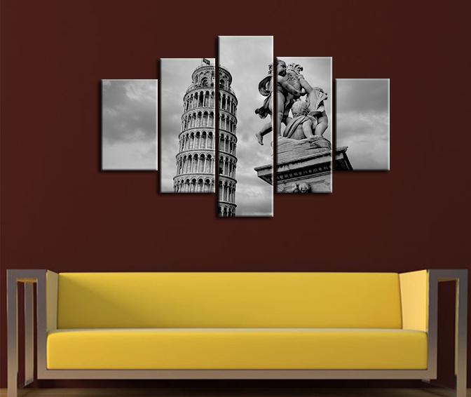 Siyah Beyaz Pizza Kulesi Kanvas Tablo