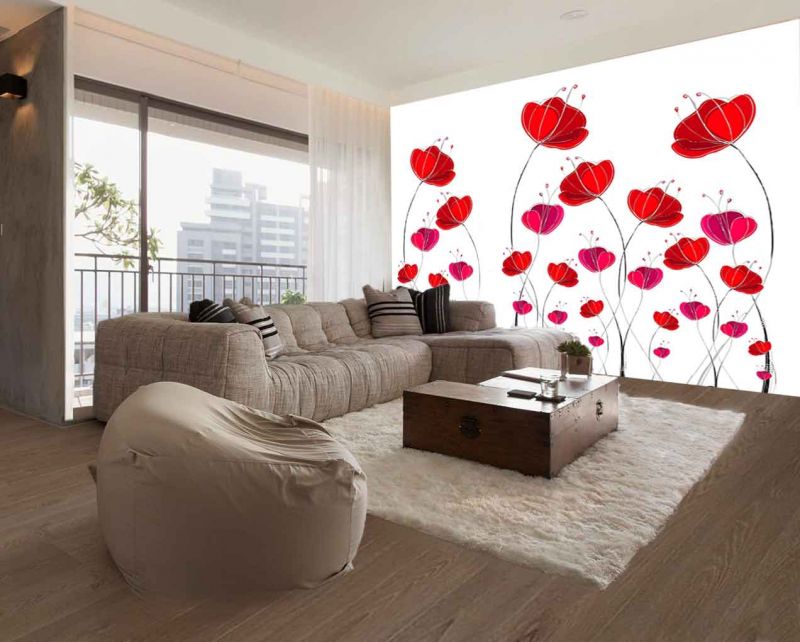 Kırmızı Gelincikler 3D Duvar Kağıdı