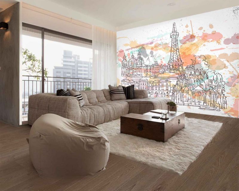 Suluboya Efektli Paris 3D Duvar Kağıdı