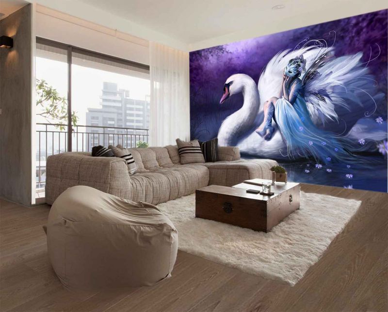 Mavi Kuğu Kız 3D Duvar Kağıdı