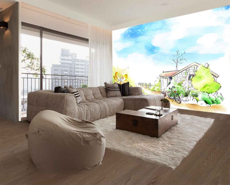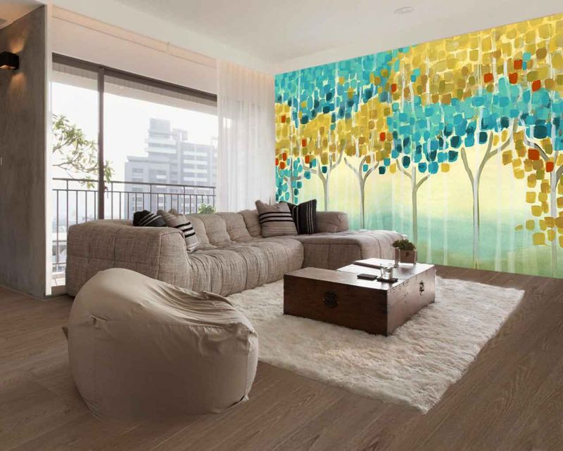Sulu Boya Ağaçlar 3D Duvar Kağıdı