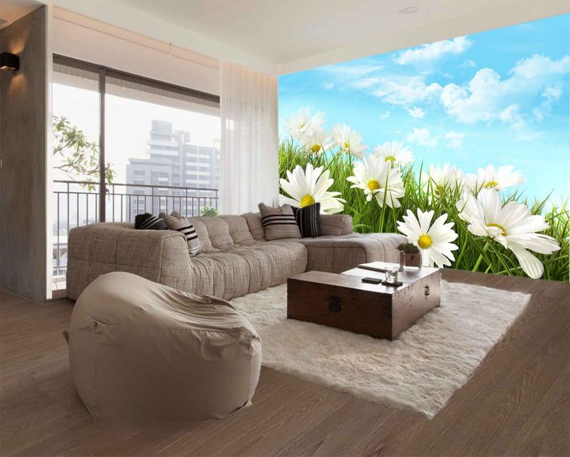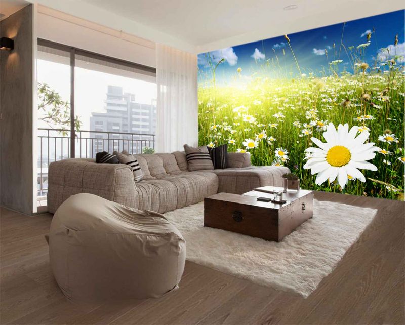 Güneş Ve Papatyalar 3D Duvar Kağıdı