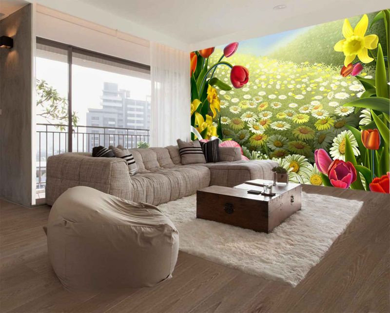 Duvara Çizilen Çiçekler 3D Duvar Kağıdı