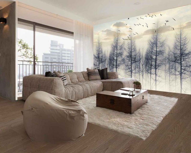Kış Ormanı Ağaçları 3D Duvar Kağıdı