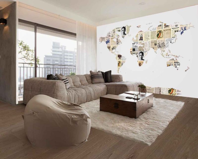 Gazete Kağıdı Dünya Haritası 3D Duvar Kağıdı