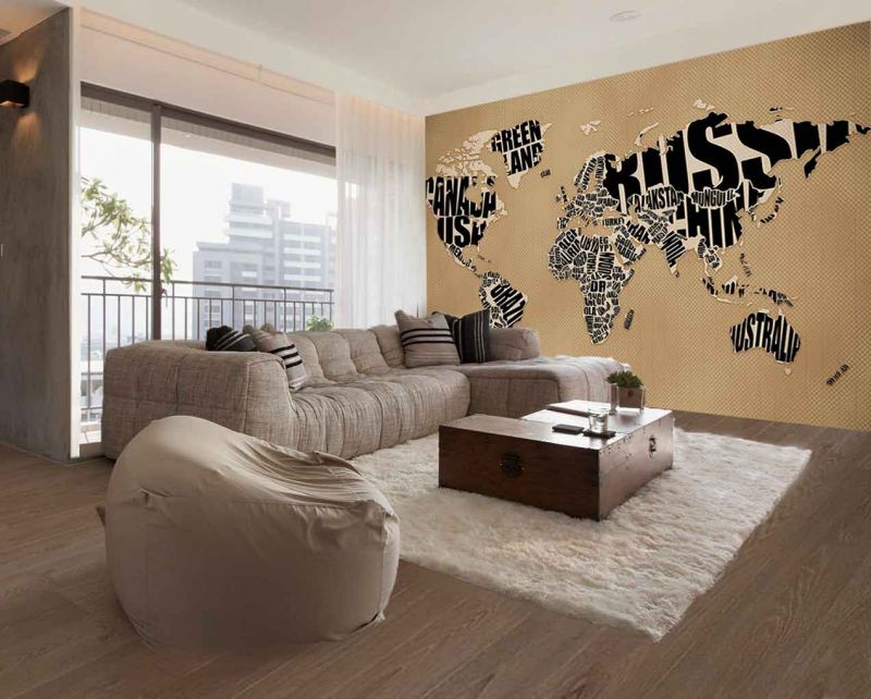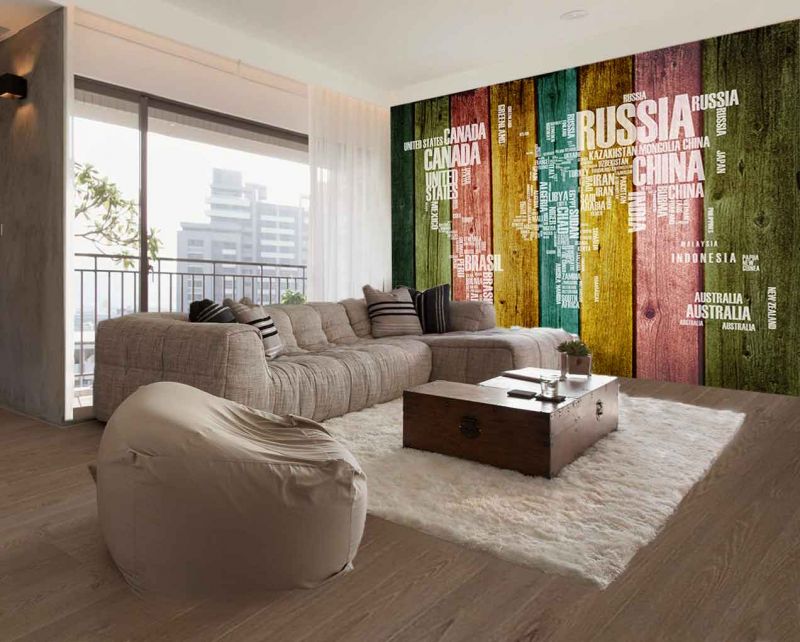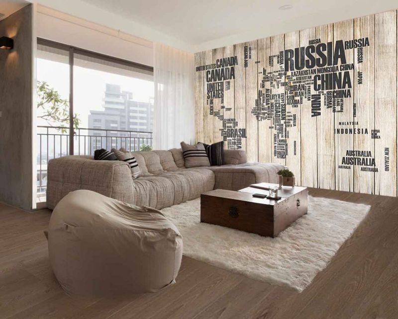 Ahşap Duvar Dünya Haritası 3D Duvar Kağıdı
