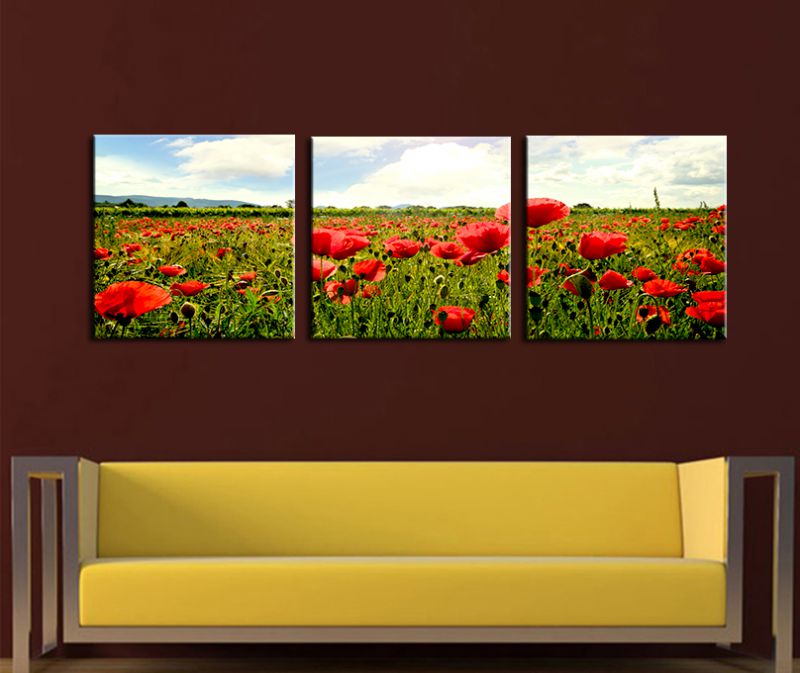 3 Parçalı Panoramik Kanvas Tablo Duvarda 35x107 cm Yer Kaplamaktadır