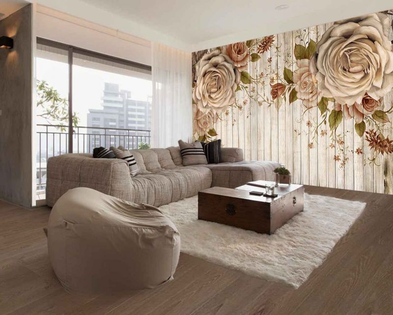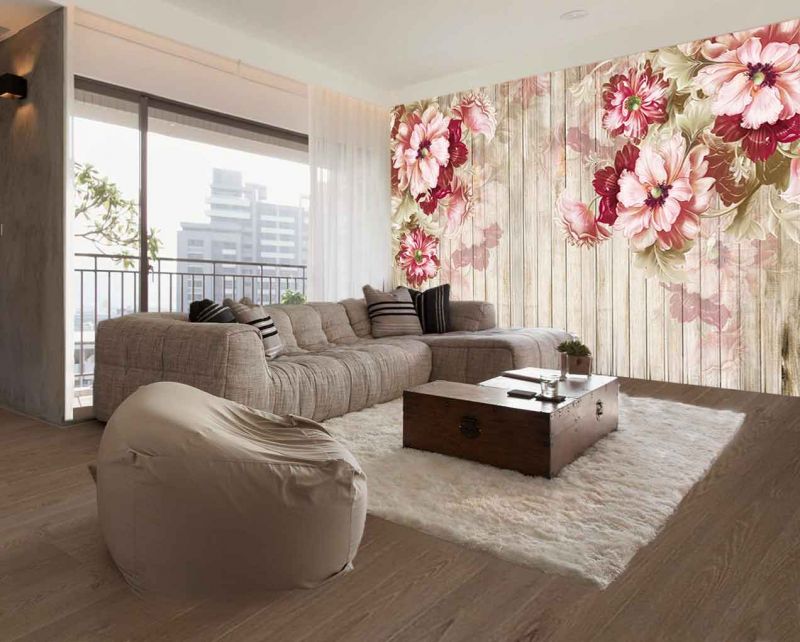Çiçekli Ahşap 3D Duvar Kağıdı
