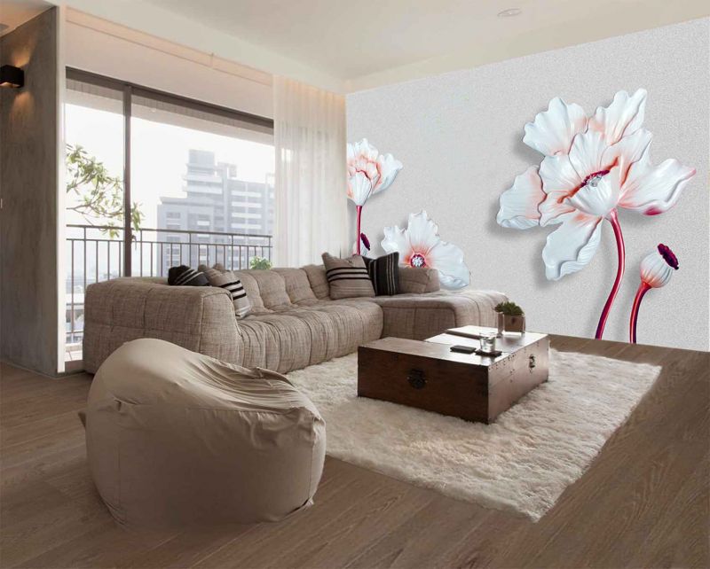 Boyutlu Kırmızı Beyaz Çiçekler 3D Duvar Kağıdı