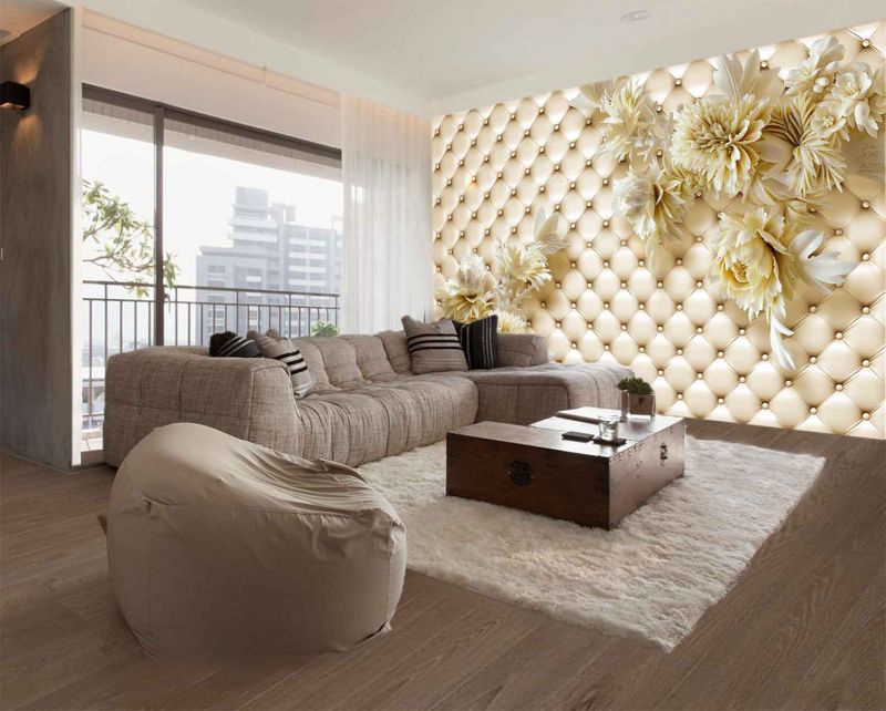 Kapitone Ve Çiçekli 3D Duvar Kağıdı
