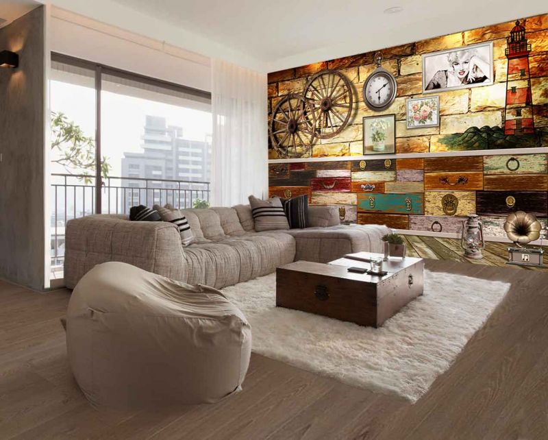 Açık Renk Ahşap Duvar 3D Duvar Kağıdı
