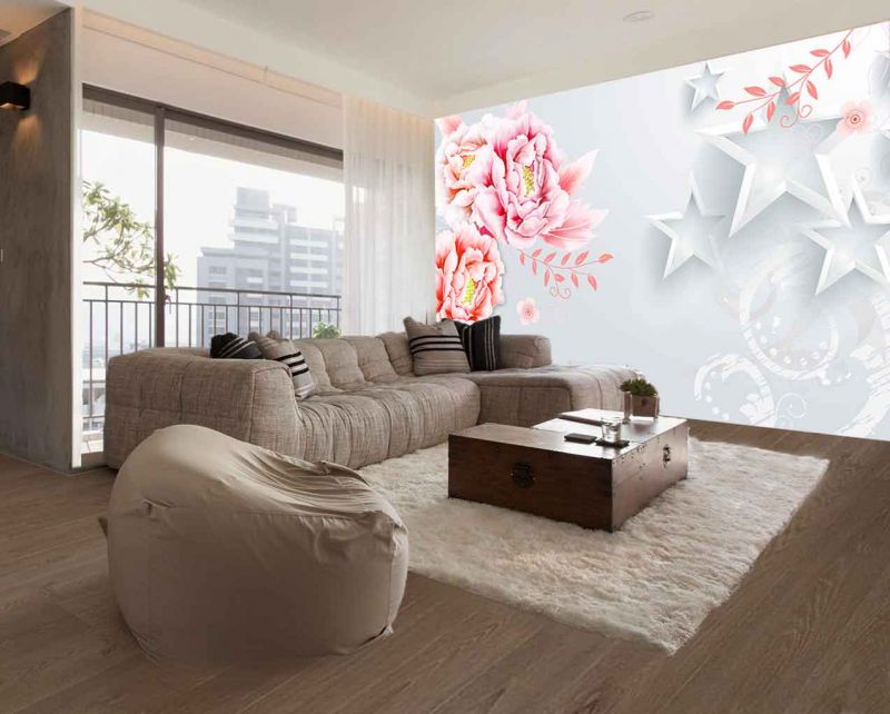 Yıldızlar Ve Çiçekler 3D Duvar Kağıdı