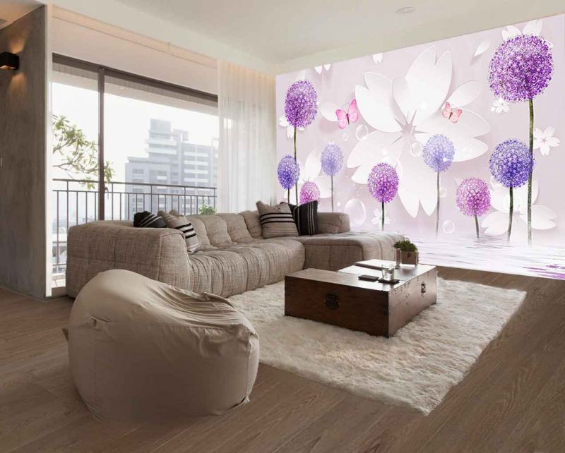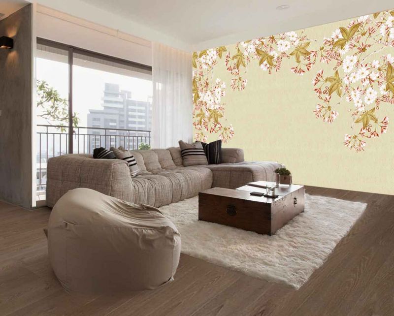 Bej Çiçekli TV Ünitesi Arkası 3D Duvar Kağıdı