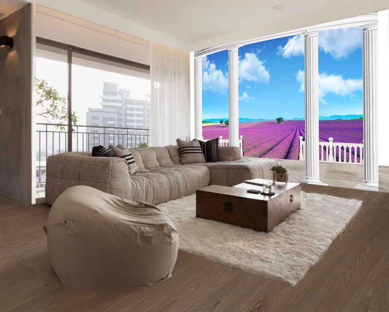 Lavanta Bahçesine Açılan Balkon 3D Duvar Kağıdı