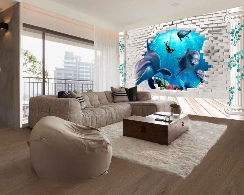 Neşeli Yunuslar 3D Duvar Kağıdı