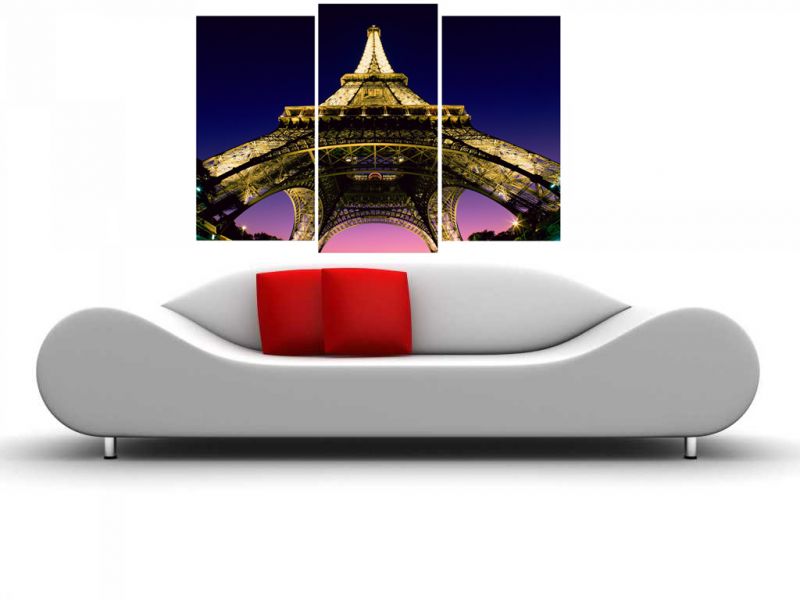 Paris Eyfel Kulesi Kanvas Tablo 3lü Parcalı Resim Tablo Duvarda 70x100 cm Yer Kaplamaktadır.