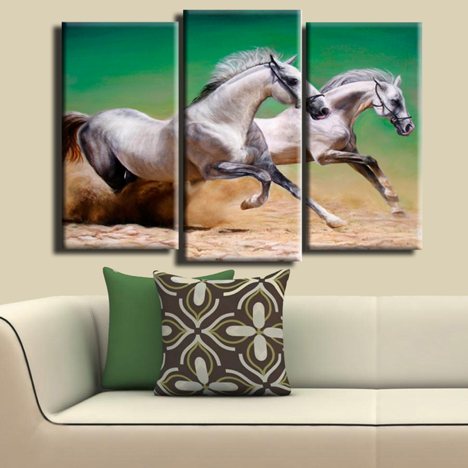 Koşan Atlar Kanvas Tablo 3lü Parcalı Resim Tablo Duvarda 70x100 cm Yer Kaplamaktadır.