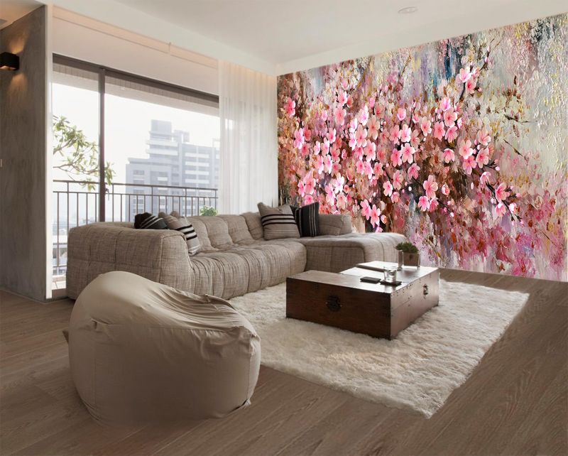Kiraz Çiçekleri 3D Duvar Kağıdı