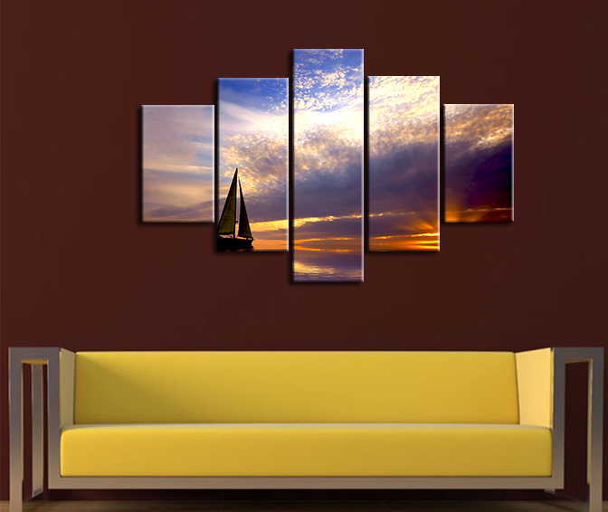 Gün batımı Yelkenli Kanvas Tablo