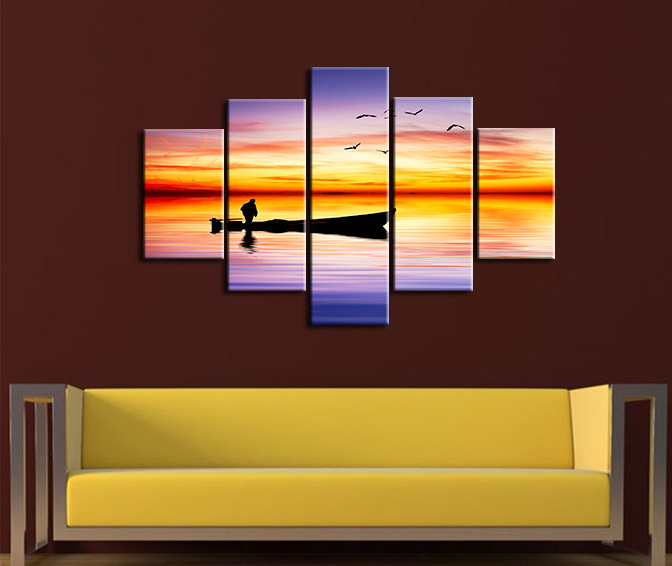 Gün Batımı Balıkçı Teknesi Kanvas Tablo