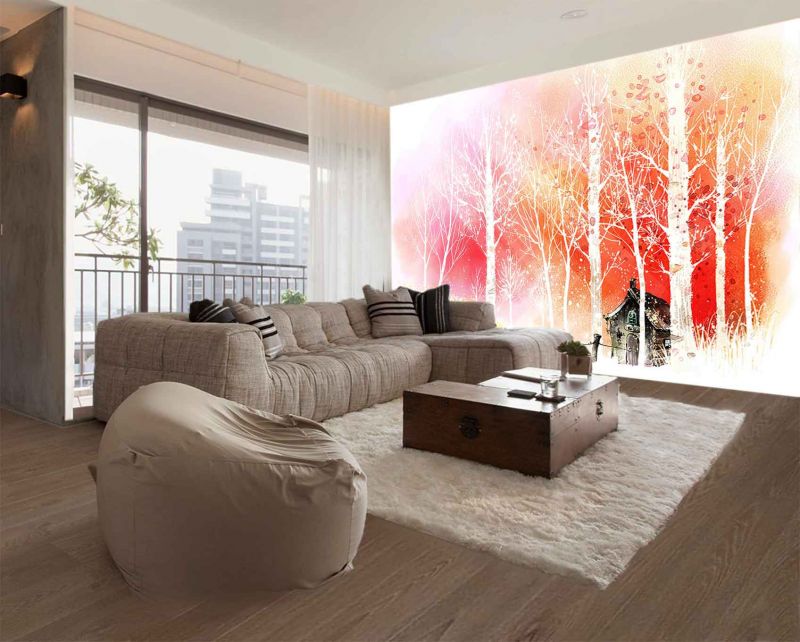 Sarı Sonbahar Ormanı 3D Duvar Kağıdı