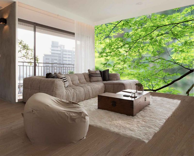 Yeşil Yapraklar 3D Duvar Kağıdı