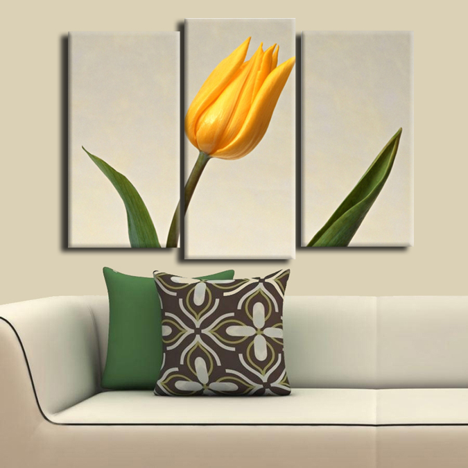 Sarı Lale Kanvas Tablo 3lü Parcalı Resim Tablo Duvarda 70x100 cm Yer Kaplamaktadır.