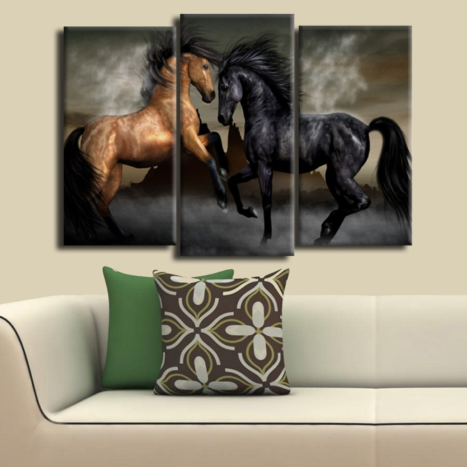 Şahlanmış Atlar Tablo 3lü Parçalı Resim Duvarda 70x100 cm Yer Kaplamaktadır.